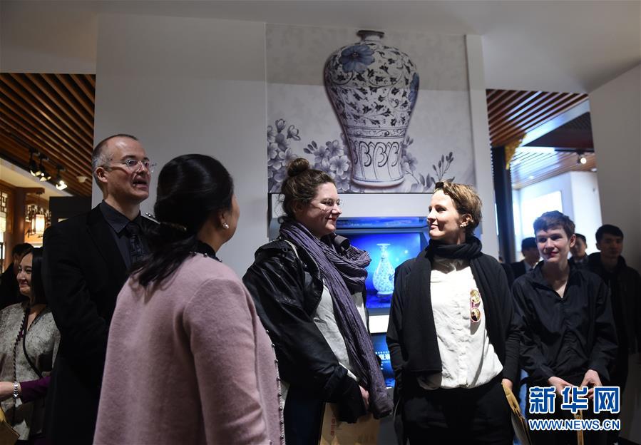 3月22日,中德艺术家在北京前门大街传统文化艺术中心参观。当日,“结伴创造艺术”德中大型艺
