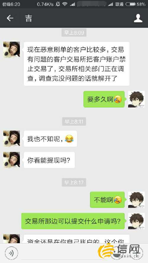 客服在微信上的回应:恶意刷单较多 观测完伎俩解开 上海华通和会员单位未说明封停原因 “我找过他们的客服,回覆说此刻恶意刷单的客户较量多,生意业务有题目的客户账户会被冻结,等观测完就解开了。”陈先生说,他不清晰这所谓的风险从何而来,“我就是通过微信节制,基础没有刷单。”信网从其提供的生意业务纪录上看到,陈先生每次生意业务的间隔时间最短在两分钟阁下,有的则到达了半个小时阁下,并没有高频次的刷单。 那么,生意业务的风险从何而来呢?信网联系到上海华通,客服事情职员称,会员单位有权封停客户的账户,“大概是会员单位觉得客户的生意业务存在风险,封停了账户。” 但进一步环境,需要向陈先生的会员单位青岛汇盛和利北京分公司了解,海联网,由其做出相应的表明,可是,青岛汇盛和利北京分公司并未对此回应。 信网通过青岛汇盛和利北京分公司公布的联系方法多次实验与其联系,但无法接通。今朝,陈先生的账户仍处于封停状态,封停的原因,上海华通和青岛汇盛和利北京分公司至今也未做出说明。 信网大宗商品频道记者 杜杲燃 文章来源:http://www.hl-china.cn/reping/53353.html |